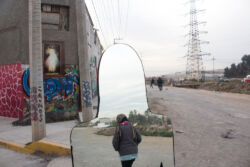 De acuerdo al Observatorio Ciudadano Nacional del Feminicidio diariamente en México mueren diez¹ mujeres a causa de violencia extrema. El Estado de México es una de las entidades federativas con mayor número de casos, concentrados en municipios como Ecatepec, Chimalhuacán y Nezahualcóyotl; este último es el lugar donde vivo. La muerte sale por el Oriente La muerte sale por el Oriente es un trabajo autogestivo que aborda la violencia feminicida en el Estado de México, y se sustenta en tres ejes: 1) documentación fotográfica y participación activa en manifestaciones feministas y acciones colectivas organizadas principalmente por madres, familiares, compañeras y colectivas; 2) emplazamiento en el territorio a partir de la colocación de una silueta de mujer hecha de espejo, en espacios públicos donde las mujeres son vulnerables y 3) mapeo digital de casos de feminicidio en el Estado de México (vía google maps) con el que también participo en una red de mapeadoras de feminicidios junto con Ivonne Ramírez (Cd. Juárez), María Salguero (CDMX) y Helena Suárez (Uruguay)